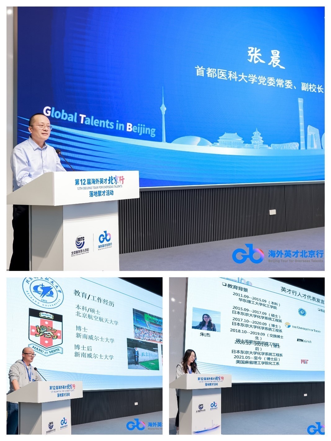 来自新南威尔士大学、日本东京大学的英才代表分别结合自己的学习工作经历分享对此次英才行活动的感受与期待,首都医科大学副校长张晨作为用人单位代表向与会海外英才介绍了学校在人才引进、人才培养、人才环境等方面的情况。与会领导还向在场英才颁发了“人才邀约卡”,展现出北京对海外人才的热情期盼和诚挚邀约。