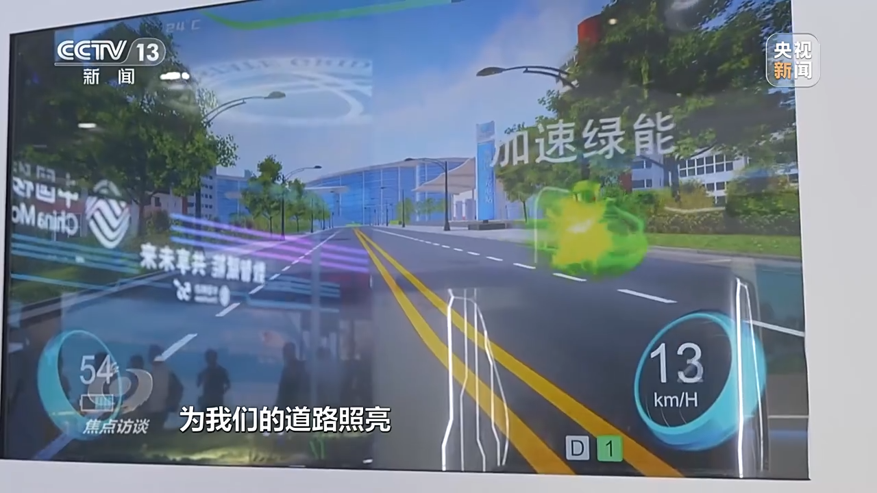 国网重庆电力参展介绍人 王迪:我们的电动汽车虚拟驾驶可以选择不同的新能源汽车进行驾驶体验,光伏道路可以将光能转化成电能输入电网,风光储一体的路灯可以将自然资源转化成光能,为我们的道路照亮。未来我们也会持续更新这一项目,尽量做到在汽车行驶时,光伏路面对汽车进行实时充电。