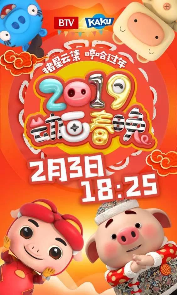 《2019 年卡酷少儿动画春晚》以“猪星云集 哼哈过年”为口号,打造80 分钟动画狂欢夜,将于2019年2月3日18:25在北京电视台卡酷少儿卫视首播。