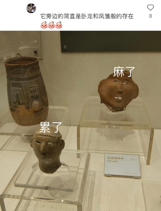除了撞脸的文物,还有一些“博物馆显眼包”充分体现了古人与今人相同的“精神状态”,成为网络交流的表情包常客。