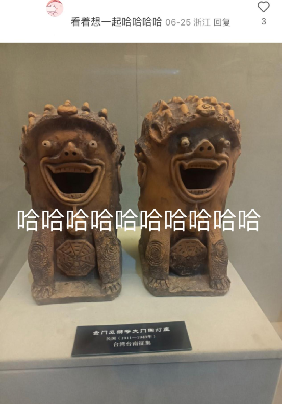 而博物馆中,部分文物因其独特的有趣可爱在一众庄严肃穆的文物中显得鹤立鸡群,网友们也纷纷晒出自己亲眼所见的“显眼包”们进行分享,分享后,各路神评论也展现了古今交晖的幽默感。