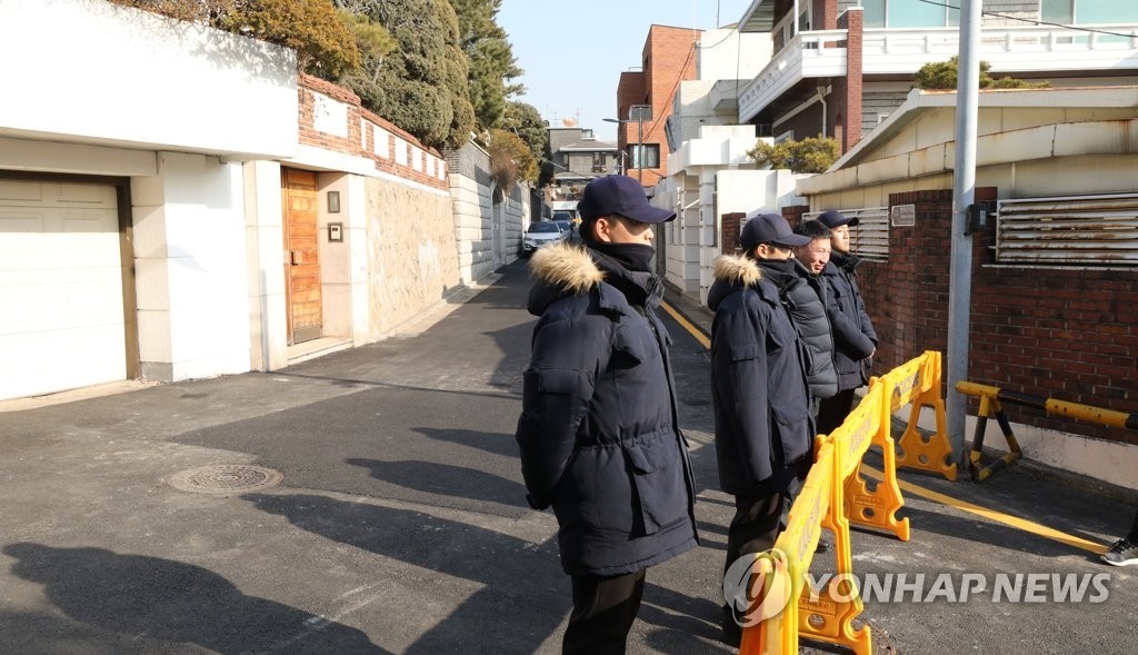 7日,警方人员在全斗焕住宅附近管制交通。(韩联社)