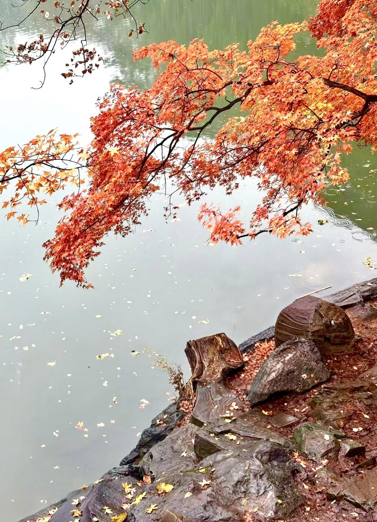 平静的河面如同一面镜子,将五彩斑斓的树林倒映其中,构成了一幅天然的水彩画。为了让这份秋日限定美景多停留些时日,颐和园也特意推行“落叶缓扫”举措——不急于清扫满地落叶,任其在游廊下、池水畔、石桥边静静堆积,将“软绵金毯”的浪漫与“斑斓落英”的诗意悄悄延长。