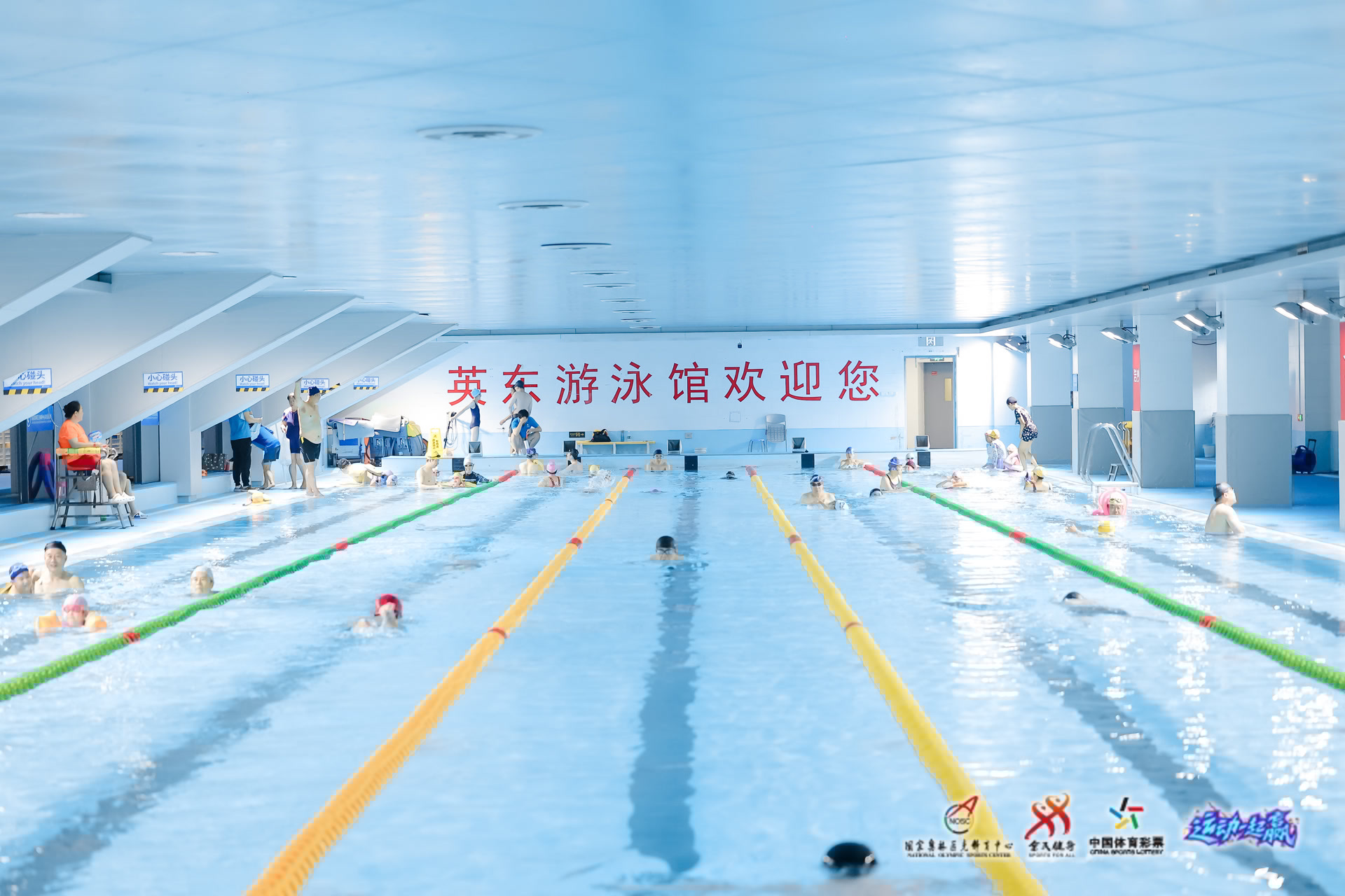 从1993年便面向社会开放的英东游泳馆,不仅于8日免费开放,本月还推出了庆祝“全民健身日”的优惠活动。65岁的魏敏已经在英东游泳馆游了快30年,她的女儿小时候在这里学会了游泳,如今正打算把已经快六岁的外孙女也送来。“这儿的空间、水质、卫生条件都特别好,别的地方比不了,工作人员和救生员也特别负责。”魏敏说,“毕竟是国家队的训练馆嘛!我们在这见过水球队、花游队。有时看看馆里高挂的国旗,游起来都更有劲。”