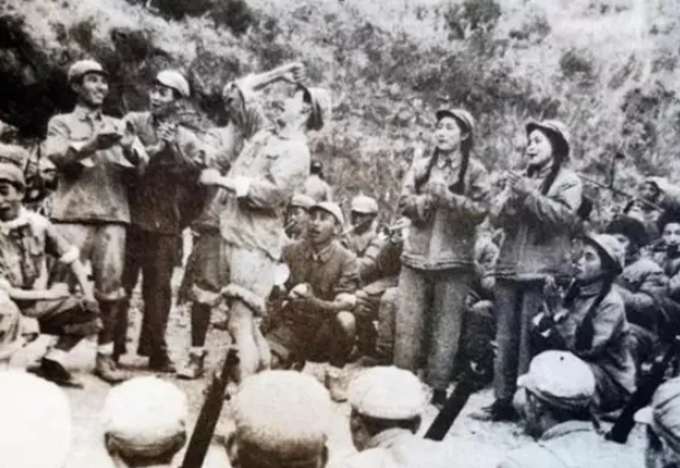 朝鲜战场上文工团员教战士们演唱《我是一个兵》(中国军网)