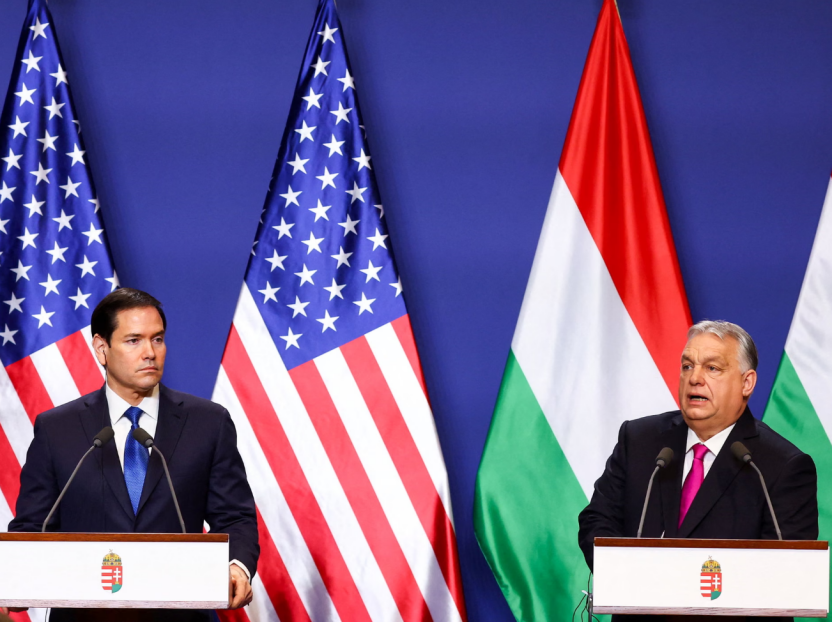当地时间2月16日,美国国务卿鲁比奥在布达佩斯同匈牙利总理欧尔班举行联合新闻发布会。图源:英媒