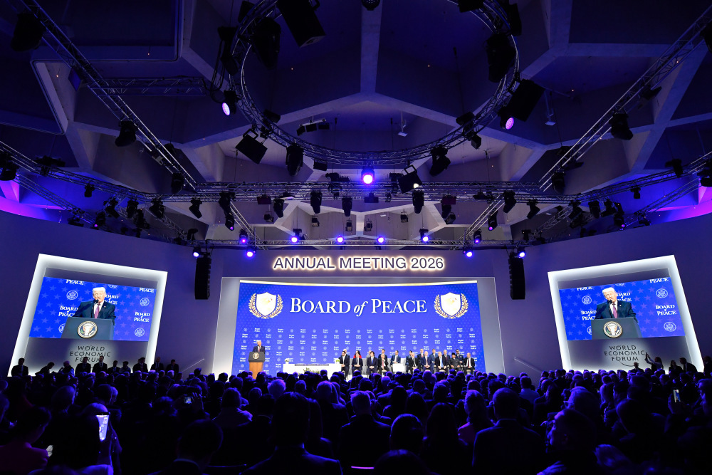 1月22日,美国总统特朗普在瑞士达沃斯举行的世界经济论坛2026年年会上讲话。新华社发