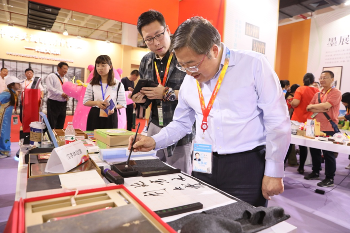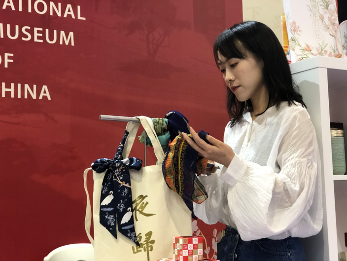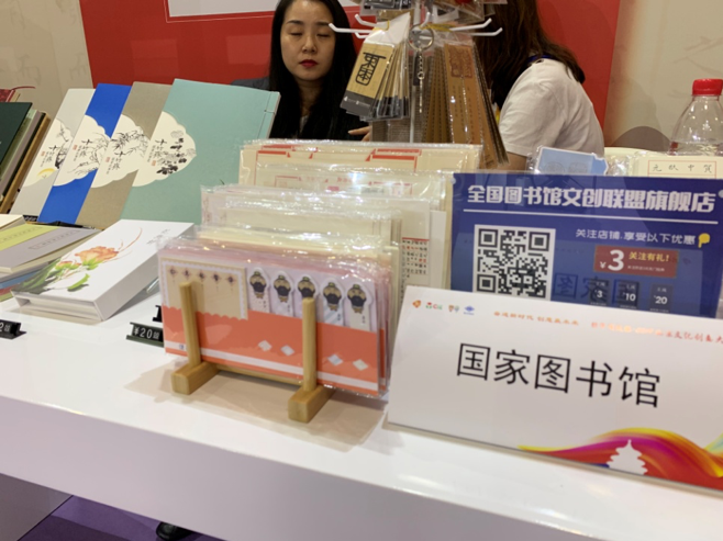 特色展示区,特邀国家博物馆、国家图书馆(国家典籍博物馆),以图文结合实物的展览形式,分别展示了基于各自馆藏文化资源开发出的一系列叫好又叫座的文创产品,如:国博文房系列、创意服饰系列、“甲骨文”系列产品等。