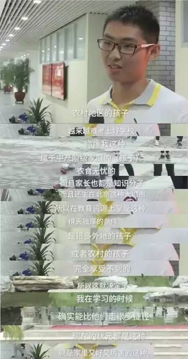 “而我在教育资源上所享受的条件是很多外地孩子或农村孩子完全享受不到的,所以这就决定了,我在学习的时候确实比他们能走很多捷径。”