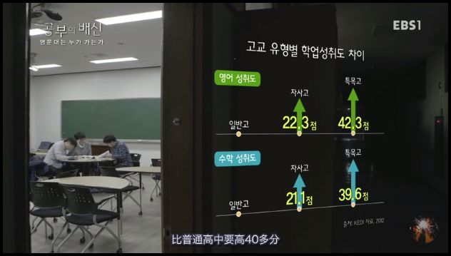 根据影片中的数据,“科学高中”学生的数学和英语平均成绩要比普通高中的平均成绩高40分。这也意味着,只有进入“科学高中”这样的学校,才能有更大的几率进入名牌大学。