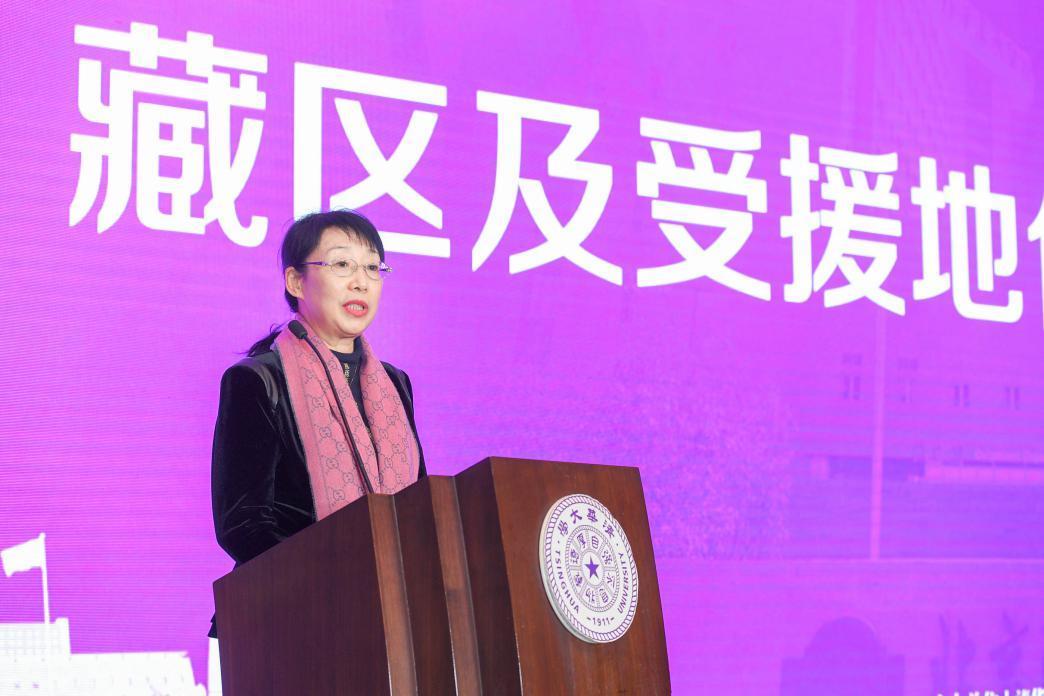 图说:图为青海省果洛藏族自治州卫健委主任韩尚丽,西藏自治区驻北京办事处党委书记赵国庆代表包虫病受援地发言,海西州的艺术团献上歌舞表演