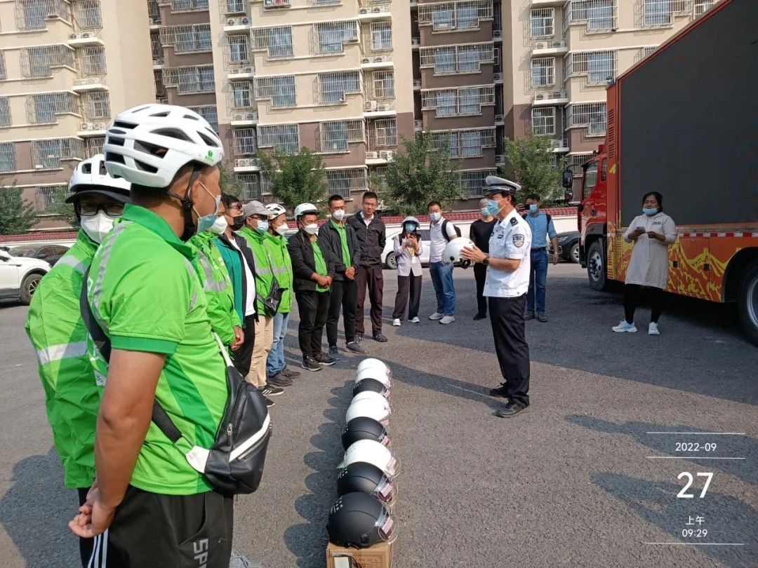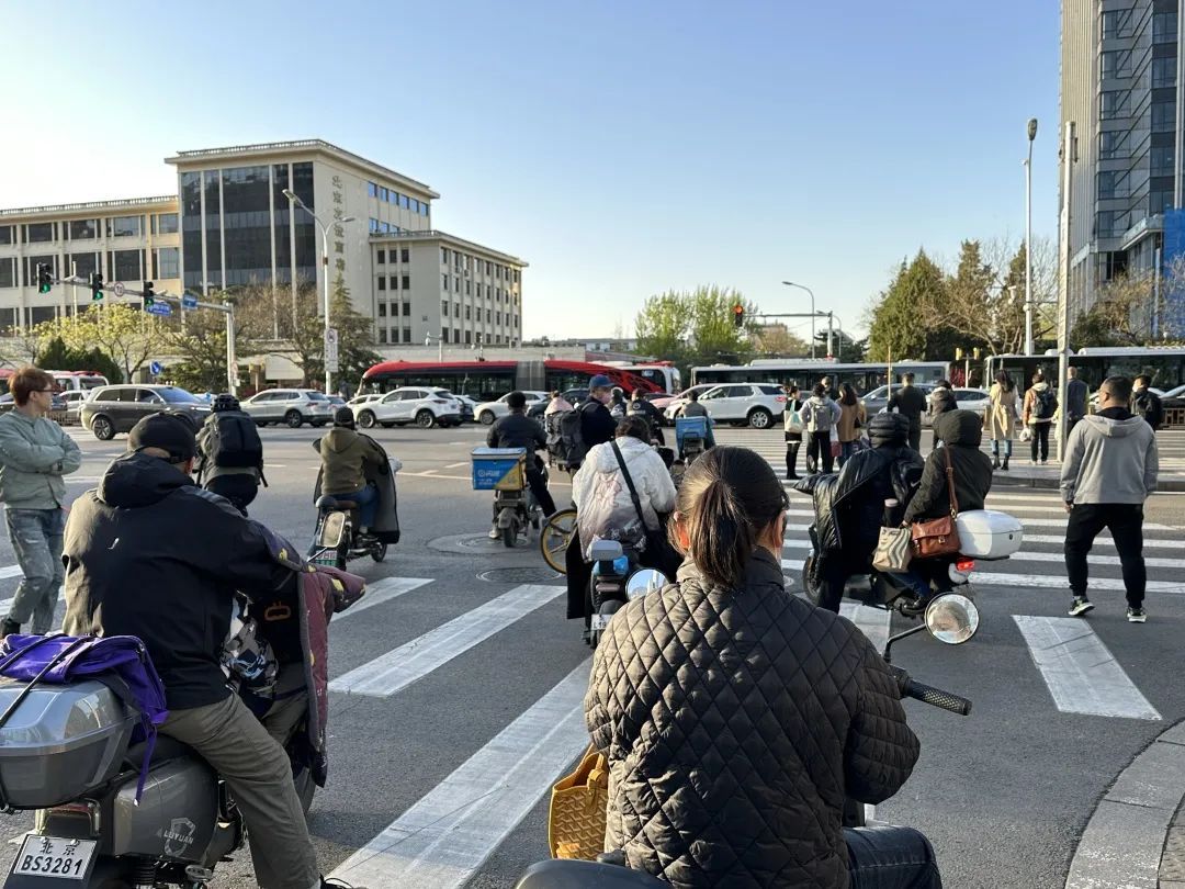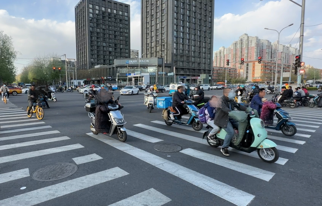 对于普通市民来说,骑车时能够佩戴头盔才完成这个保护链的闭环。4月6日下午5点半,记者在朝阳区十里堡地铁站路口观察,据不完全统计,在5分钟内有91辆电动自行车经过,有40位市民佩戴了头盔,其中有28名都是外卖骑手。大多数外卖骑手佩戴的都是平台下发的头盔,他们表示,平台会监管头盔佩戴情况和时长。