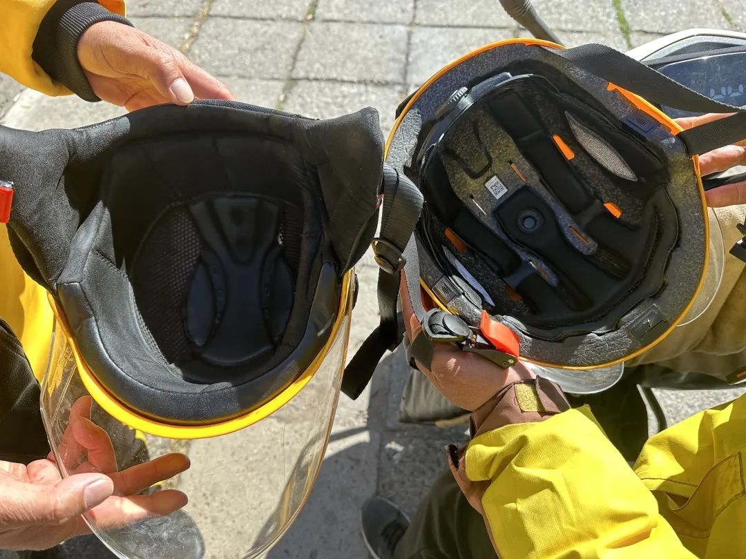 外卖骑手头盔内部/记者拍摄