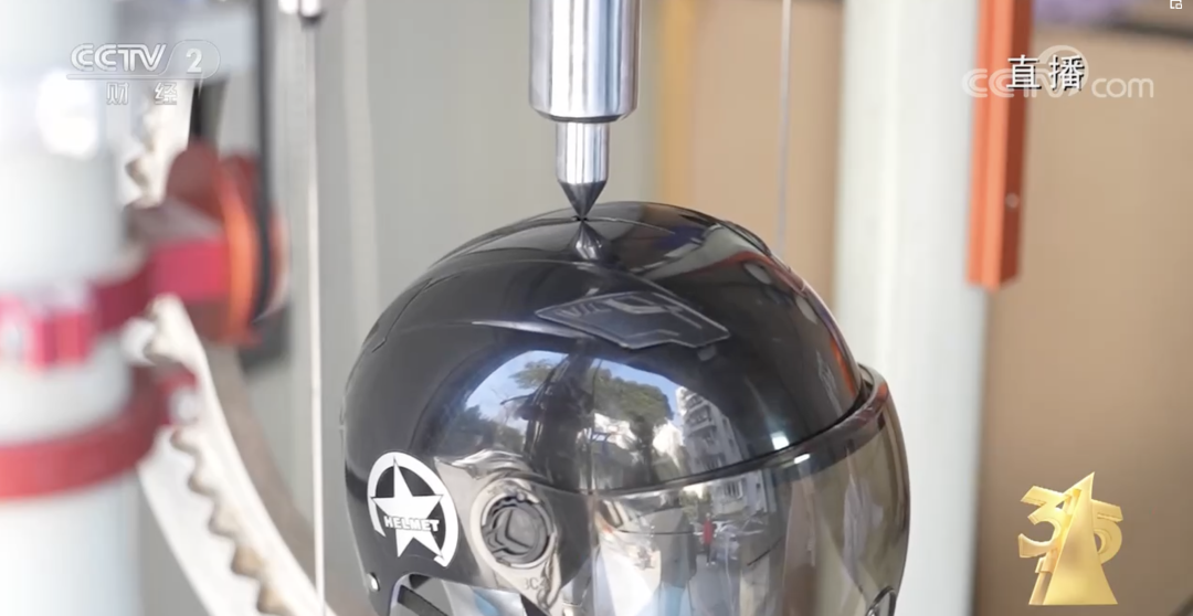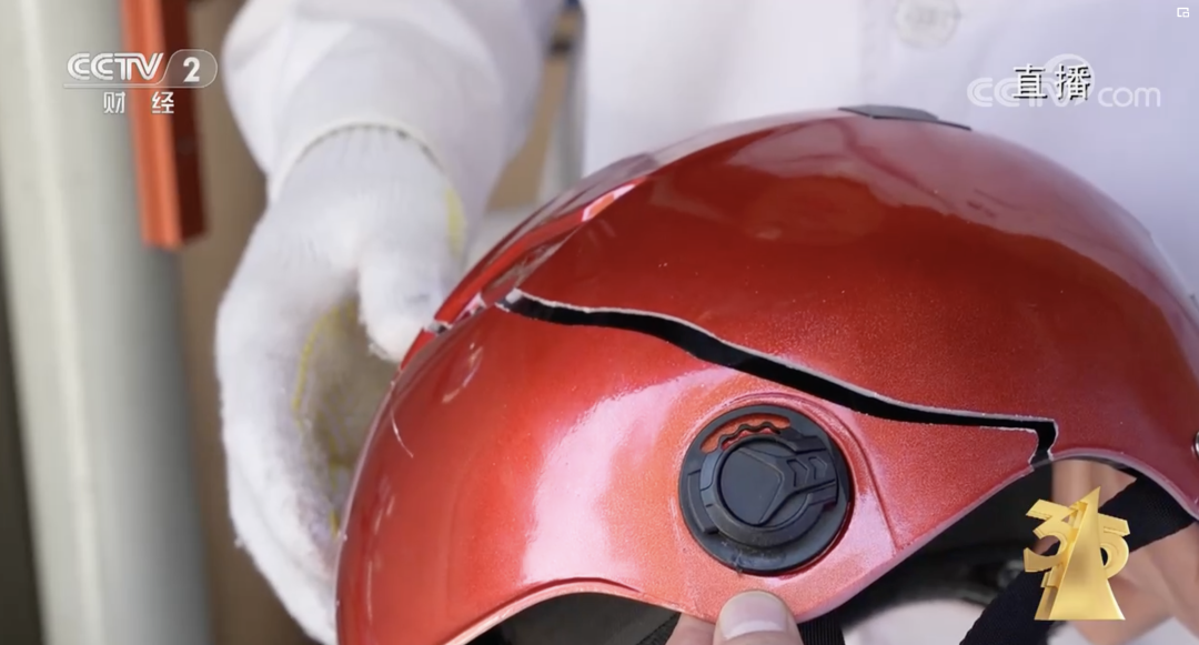 头盔在检测中受损/央视节目截图