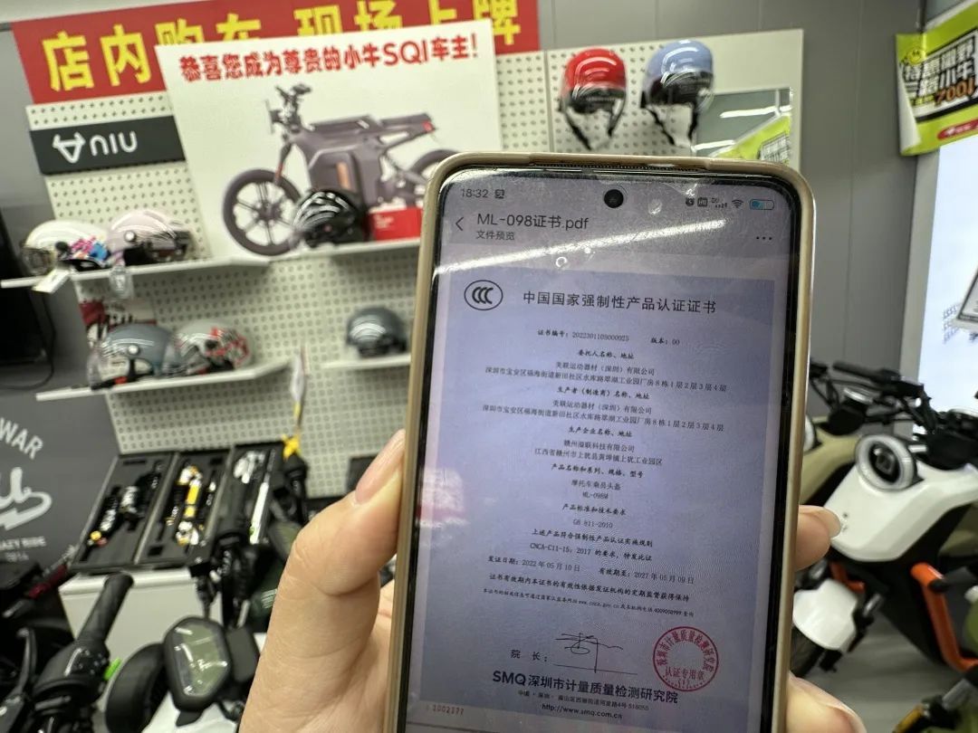 店主:“过去有那种便宜的头盔,不让卖了,只允许咱们卖这种3C的。那种便宜的价格大概在二三十块钱,都是普通塑料的,掉地上虽然不会烂,但是你使劲砸一下肯定会烂。咱们这种就是拿锤子都砸不烂的,没有这种保护层起不到防护作用。”