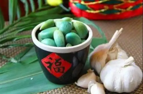 在中国北方地区有在腊八这天用醋泡大蒜的习俗,名“腊八醋”。腊八醋,要泡到大年初一,初一吃饺子,要吃素饺子,取一年素素净净之意,蘸腊八醋吃,别有一番滋味是。“腊八醋”不仅味道醇正,而且久放不坏。