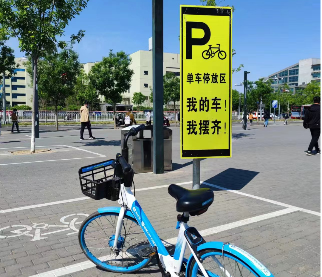 除此之外,清河站区还新上线了“电子围栏”功能,单车运营企业按规划区域进行规范投放,通过短信告知引导骑行者停放至白色停车框内。规范的站区环境、文明的归还秩序离不开大家的一“骑”努力。除了“电子围栏”的硬科技,站区还提供温情的软服务,在早晚高峰共享单车使用频繁时,安排专人进行秩序引导,形成公共秩序规则。