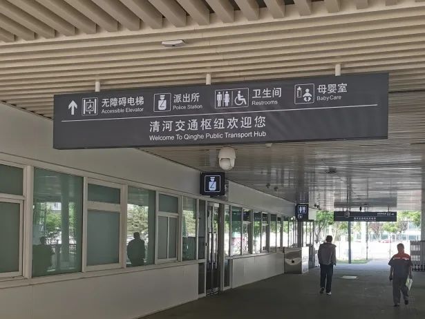 在清河交通枢纽,记者看到这里一路上都有志愿者和文明引导员为乘客指引,还设有无障碍通道和崭新的指示站牌。