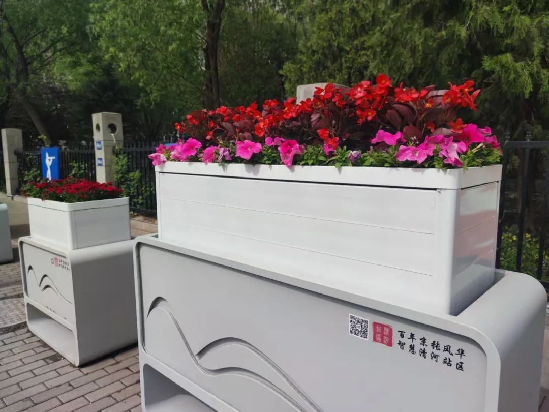在清河站区东广场,20个造型花箱整齐排列,重点站区清河站办为附近居民和过往旅客上新了色彩鲜艳的时令花草。清风吹来,淡雅的幽香轻轻慢慢地散开,不远处就是清河站区东广场的志愿岗亭。