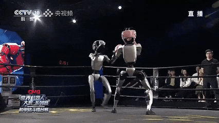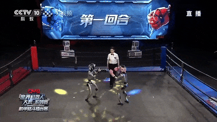 机器人会的可不止这些。它们还能拍拍大腿,以示挑衅,或者挥动双臂,庆祝胜利……网速较快的网友称:“有这样高能的格斗进入直播,总台真是科幻界数一数二的人物。”