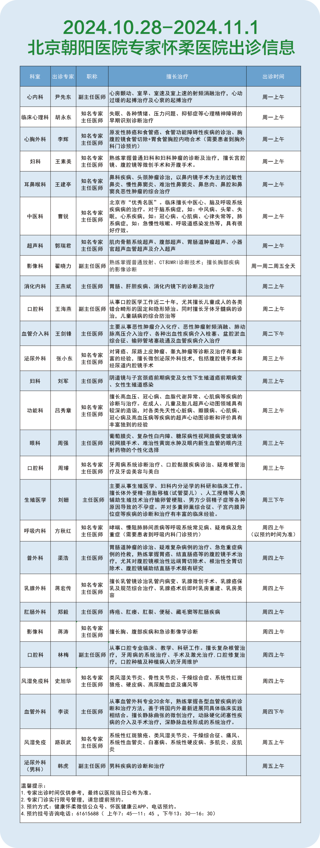 北京朝阳医院专家怀柔医院出诊表_北京时间