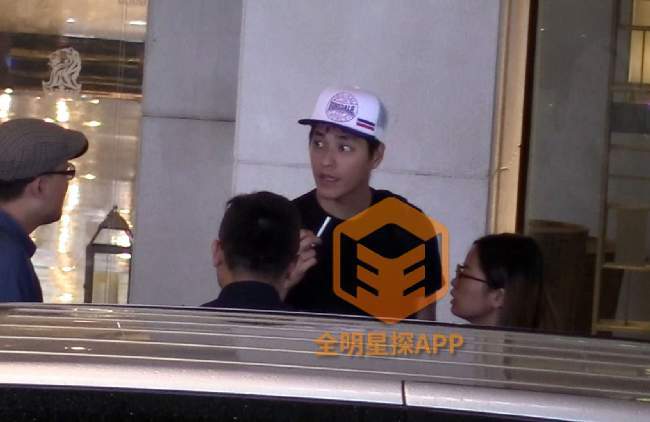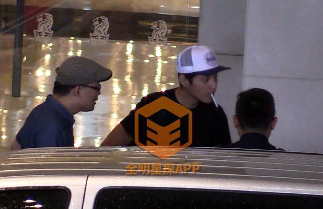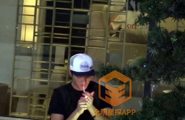 当天他身穿一件黑色T恤,休闲牛仔裤,戴着白色的帽子现身某酒店大厅门口,与工作人员站一起聊天,聊着聊着只见蓝正龙拿出一支烟放到了嘴里。