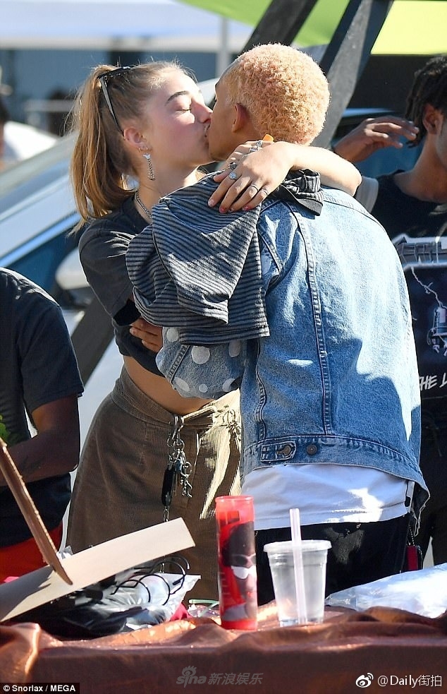 新浪娱乐讯 当地时间8月27日,18岁星二代贾登·史密斯(Jaden Smith)和新女友 Odessa Adlon 在洛杉矶出街,当众热吻尽显激情。