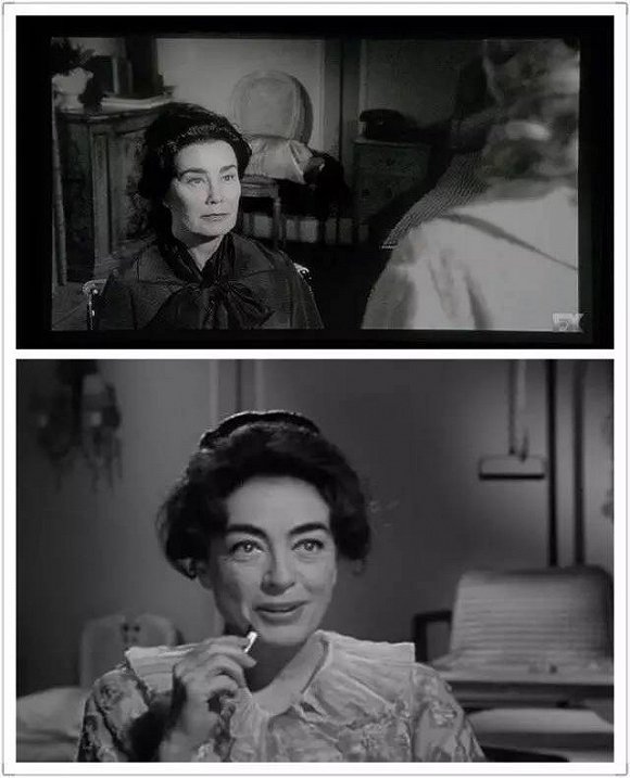 如果大家看过《兰闺惊变》,会发现这部电影的拍摄过程虽然像《宿敌》拍的一样艰难,两位drama女王,一直不断的惹出各种麻烦,但是这部电影本身也对她们进行了一次恶毒的反击。在《兰闺惊变》开始,分别放了两位女演员年轻时的电影片段,而且是很年轻的时候,再对比到她们现在的容貌,可谓是杀人不见血的狠毒。