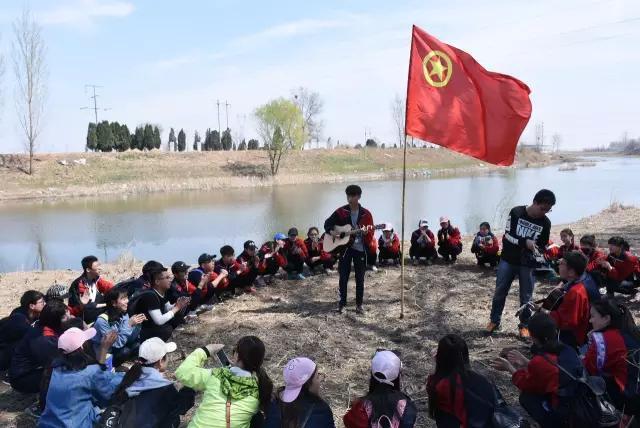 中午,学生们到达了目的地,稍作休整之后。各班就开起了特色主题班会。音乐班弹起了吉他,传媒班说起了电影,而美术班的同学则抓住难得的机会,打开写生簿开始记录下这美好春光。