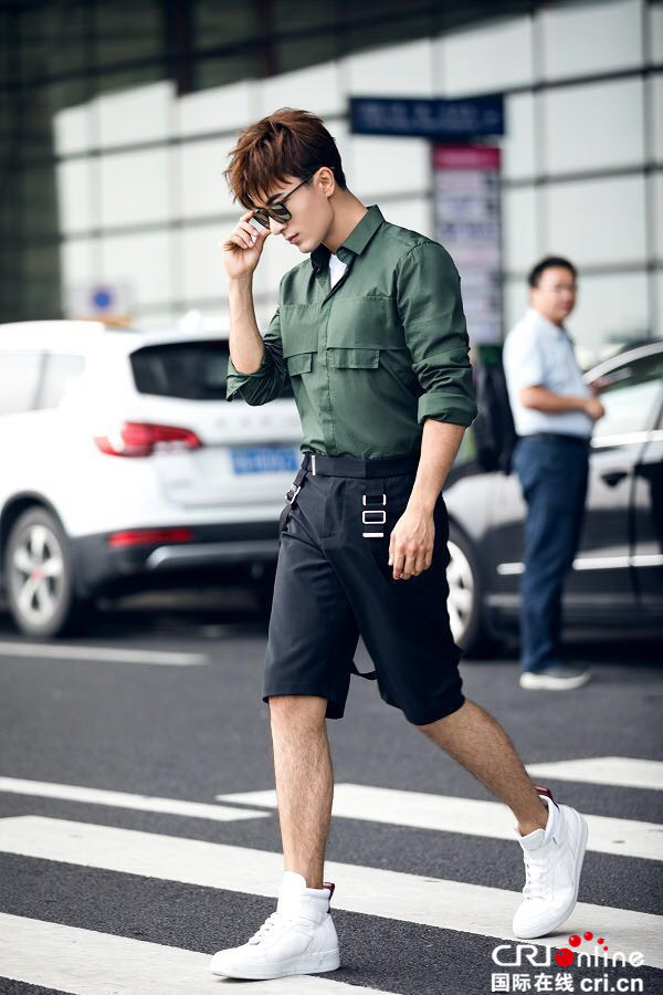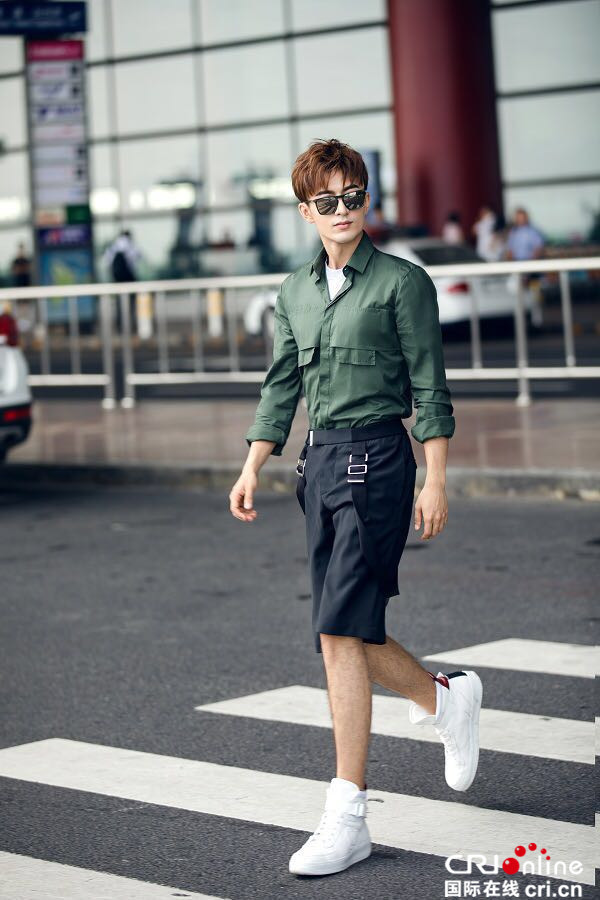 米热身着墨绿色衬衣,黑色休闲短裤现身机场,帅气十足,墨镜超抢眼。贴身的衬衣尽显好身材,清爽明朗,少年感十足。