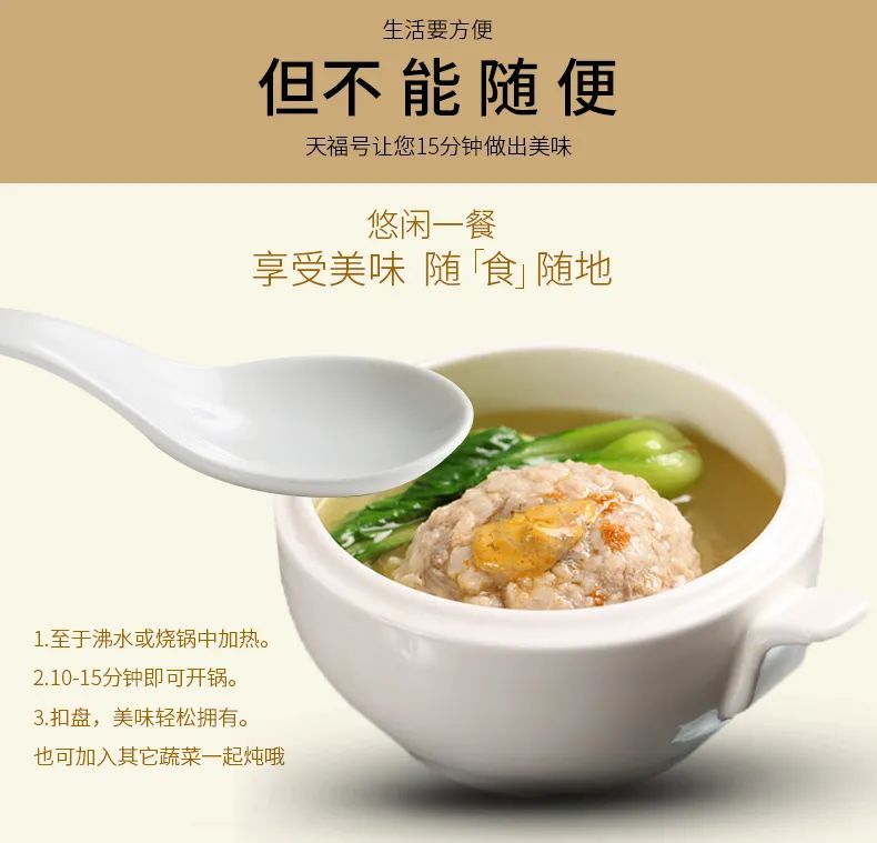 采用特殊的塑封包装,如果想要加热,是可以直接放在开水中煮的,完全不影响口感。包装中含有适量的汤汁,丸子不干燥。