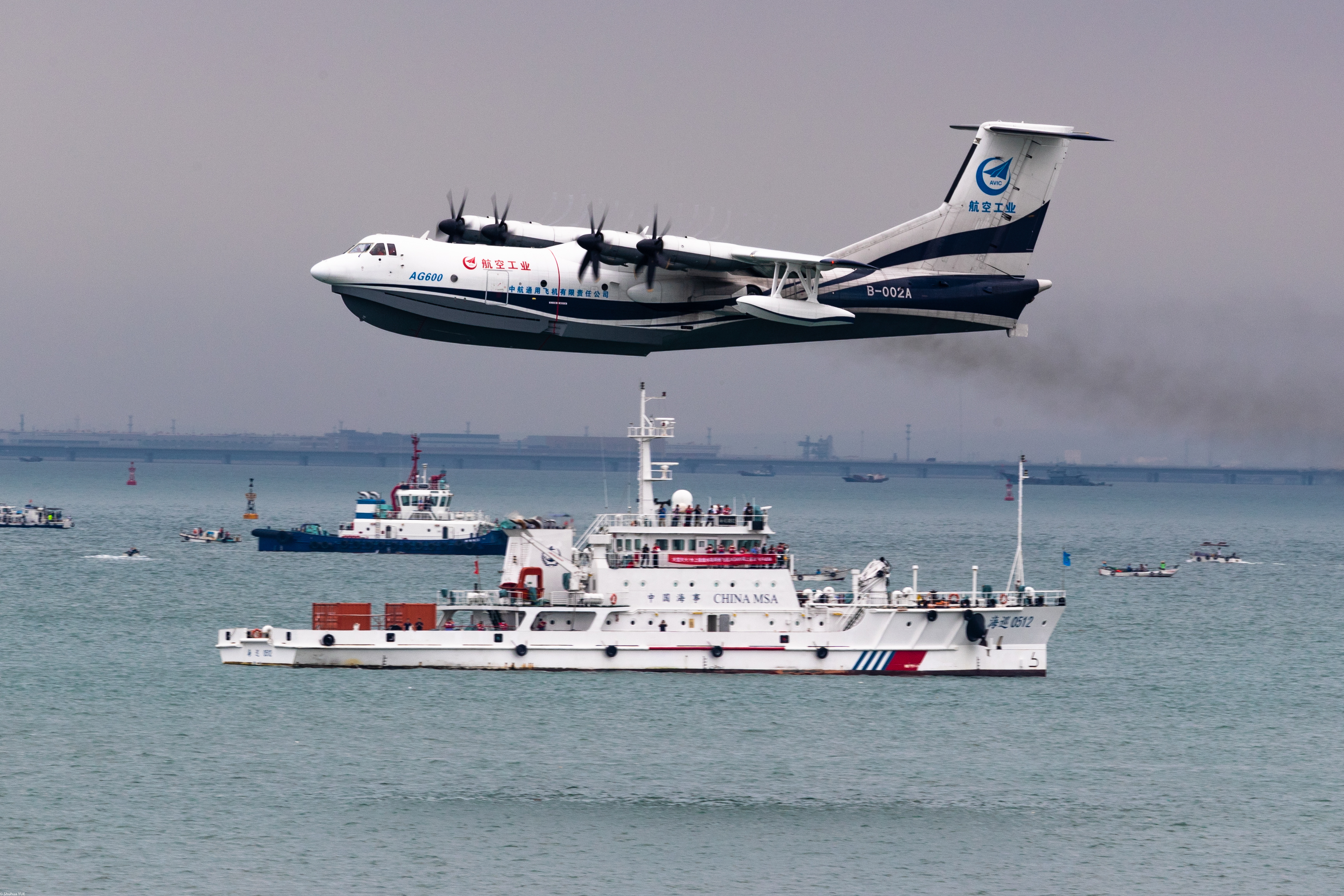 2020年7月26日AG600飞机在青岛海上首飞成功 图为AG600掠海飞行 岳书华摄