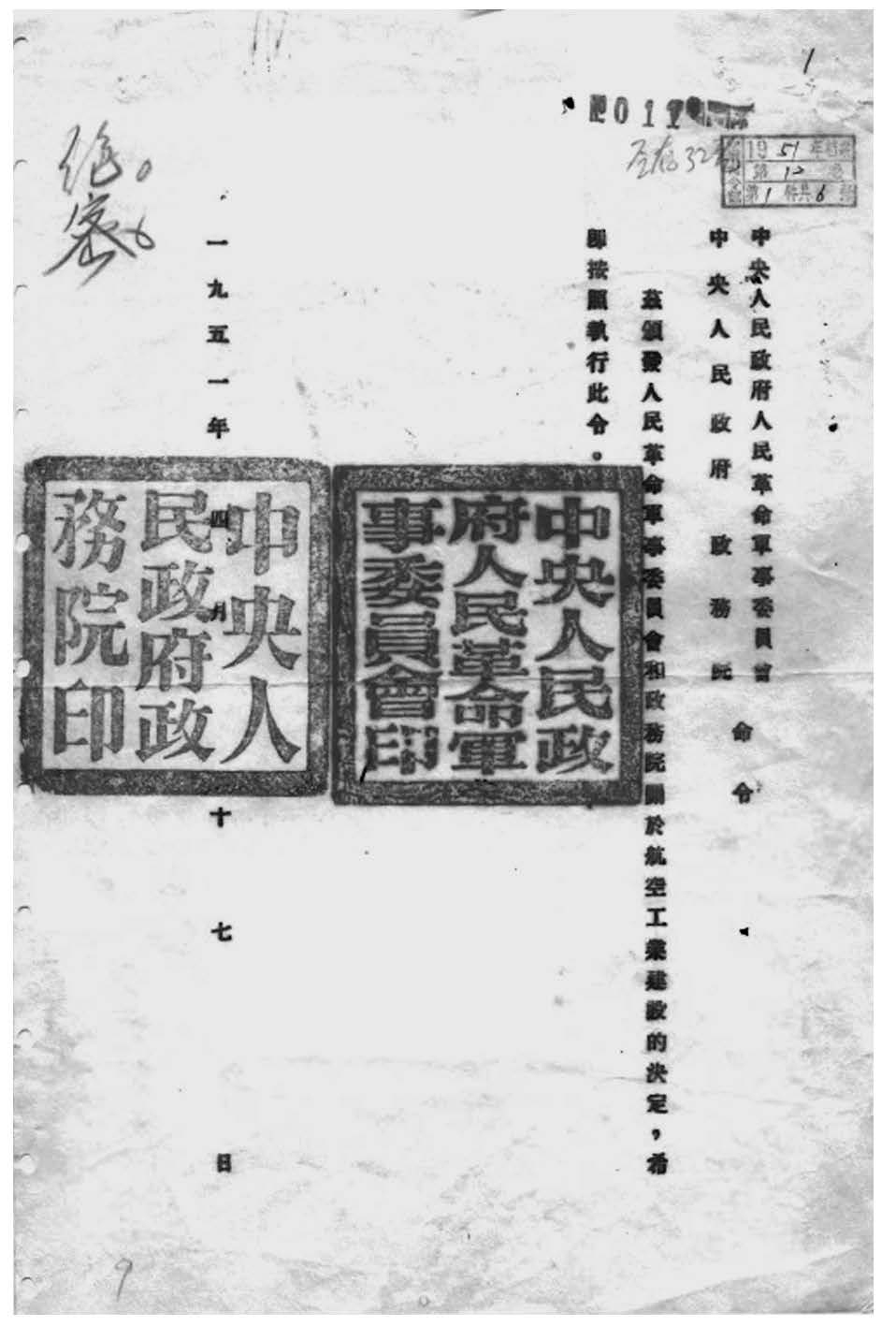 1951年4月17日,中央人民政府人民革命军事委员会 和中央人民政府政务院做出的《关于航空工业建设的决定》,这个决定成为新中国航空工业的“出生证”。